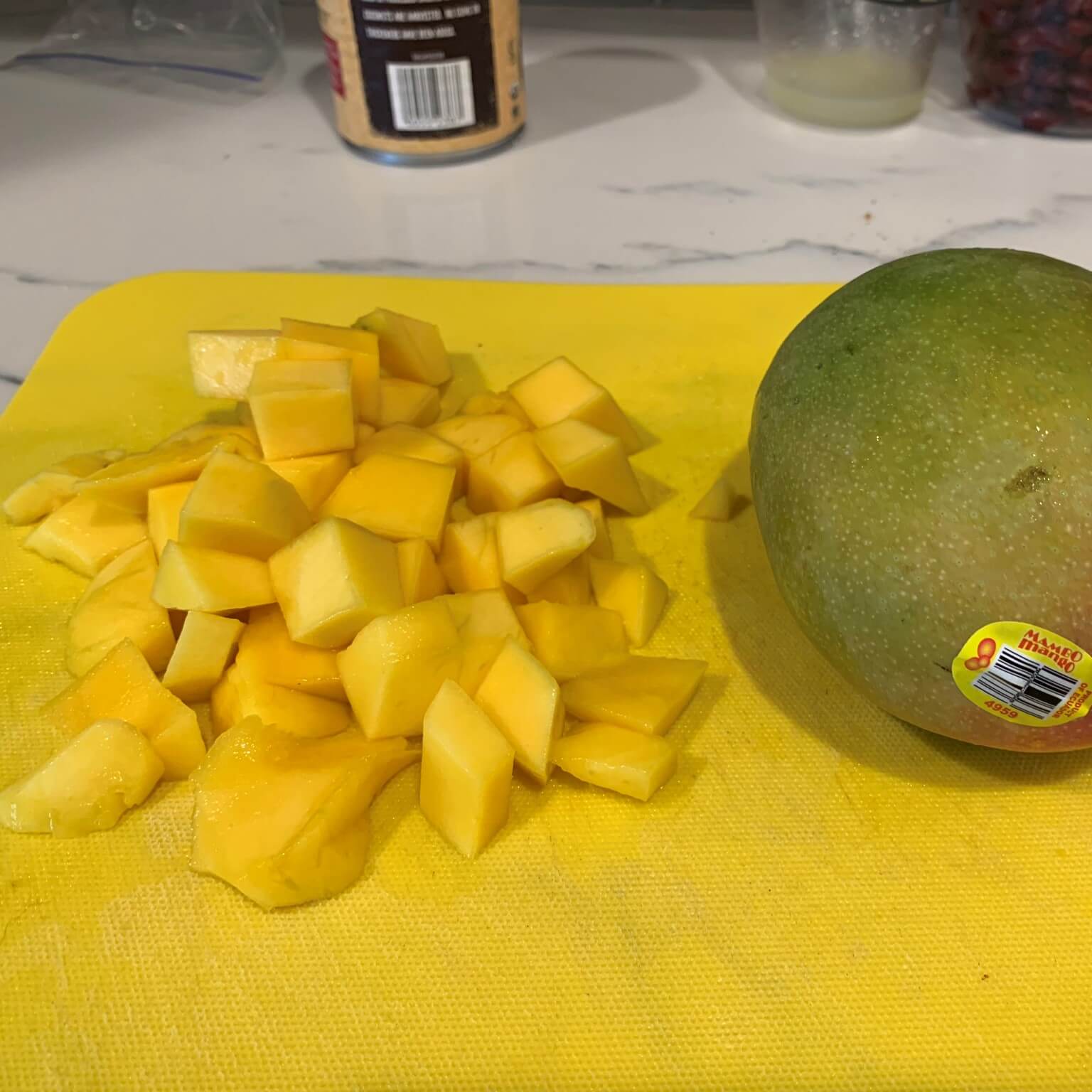 chicken ginger mango rice bowl cut mango