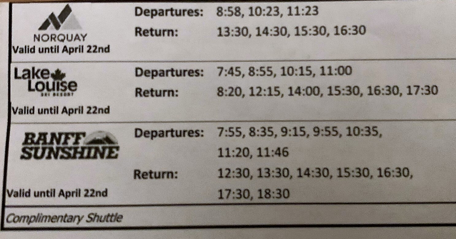 banff ski bus route